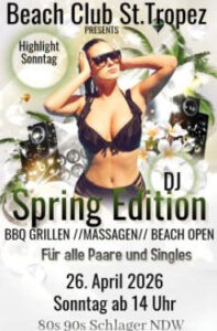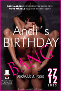 Zusätzlich zu unserem regulären, abwechslungsreichen Programm bieten wir Euch spezielle Events als Highlights. Diese Veranstaltungen finden in regelmäßigen Abständen, für Paare & Singles in unserem Haus mit verschiedenen DJs und Specials statt, um ganz besondere, heiße und erotische Nächte zu feiern! Mit besonderen, erotischen Animationen und Erlebnissen tolle, schöne, relaxte Clubabende erleben! Achtung “Kopfkino”-Garantie!