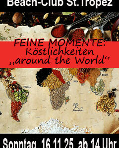 Feine Momente: Köstlichkeiten around the World Der kulinarische Sonntag im St.Tropez! Köstlichkeiten aus aller Welt - ... 16 Nov. 14:00 Uhr - 23:00 Uhr Club St.TropezLinker Kreuthweg 11, 86444 Mühlhausen